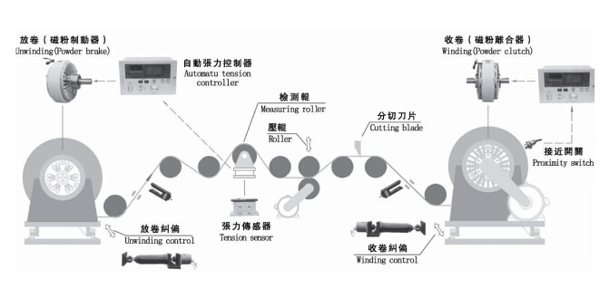 实时检测张力并且控制磁粉离合器的力矩大小。