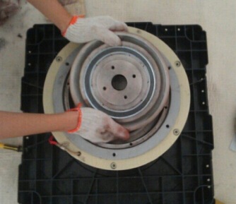 5.加入磁粉后,请将定子、定子螺栓、铝盖、铝盖螺栓等按原来位置固定,这一步很重要,如果大意会导致泄漏磁粉;