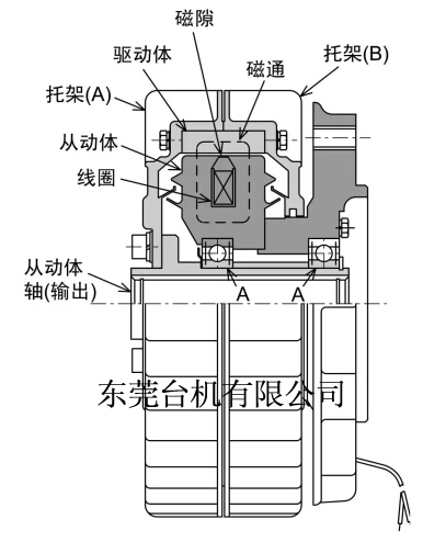空心轴外壳旋转磁粉刹车器运行: