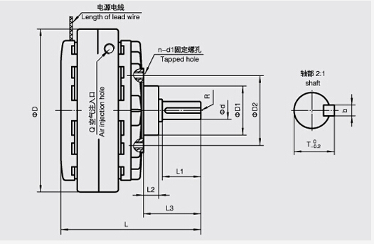 POD型磁粉制动器与磁粉离合器的原理相同,只要磁粉离合器的从动转子加以固定,就形成了磁粉制动器。