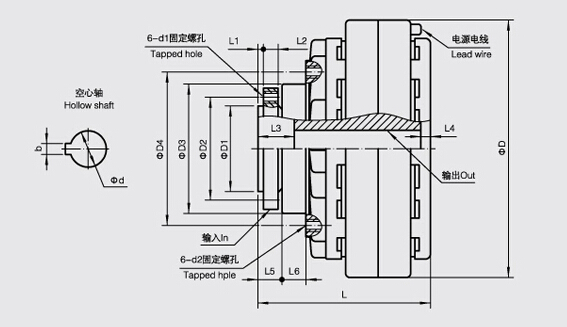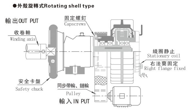 内壳旋转磁粉离合器安装方式示意图如下:
