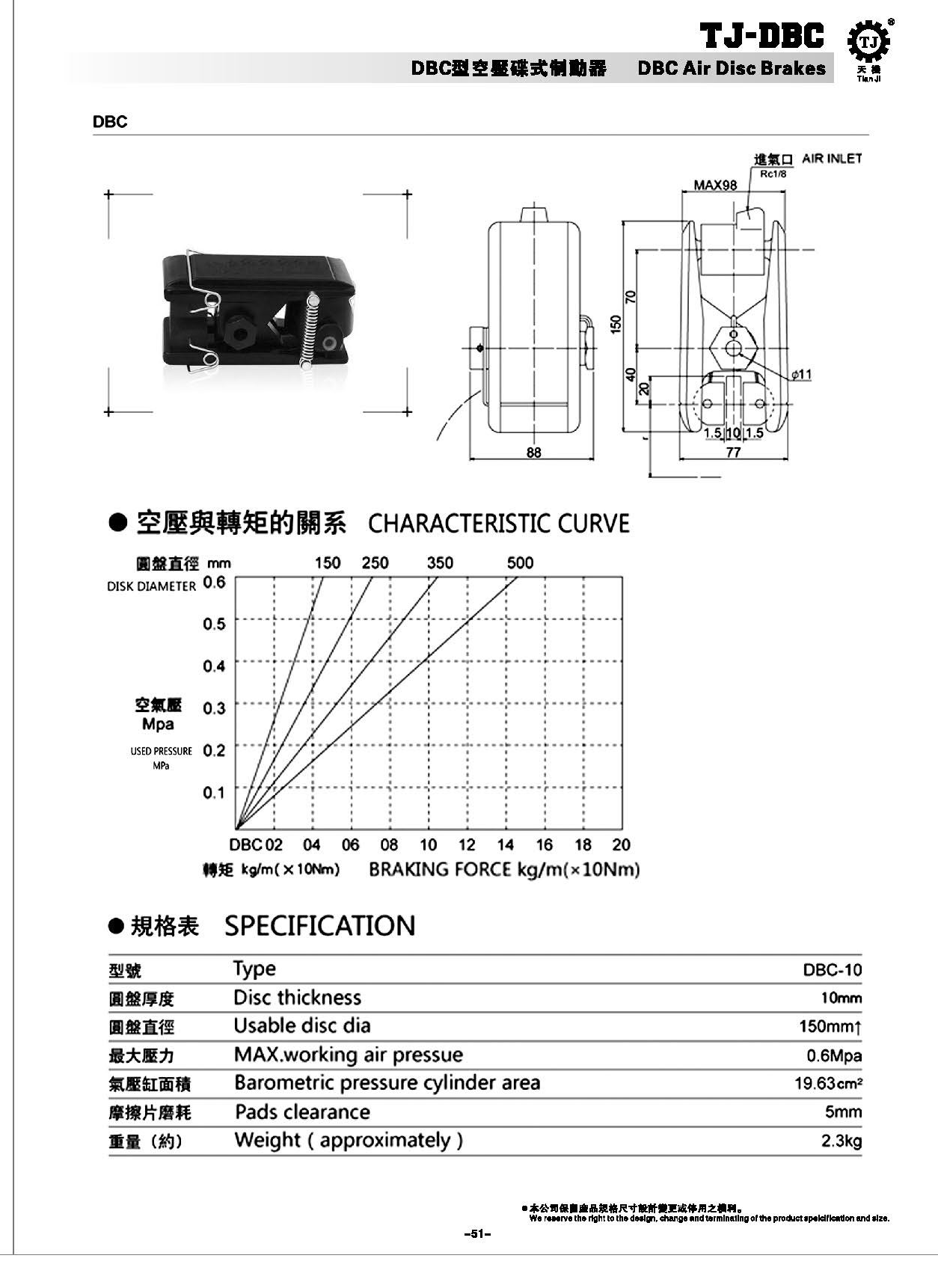 DBC型空压碟式制动器即为气动制动器,属于一种较为有历史的工作传动件,其工作主要是靠气压。由于是使用气压,因此空压碟式制动器比较环保、耐用、制造成本低。DBC型空压碟式制动器特点: