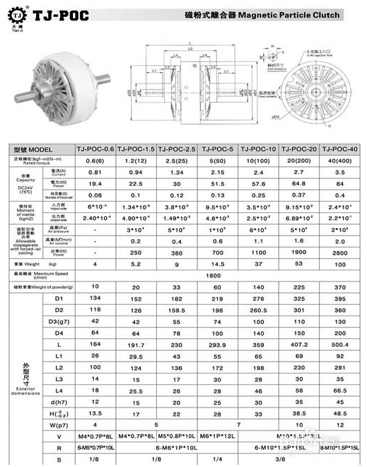 磁粉离合器厂家规格参数手册-东莞天机传动